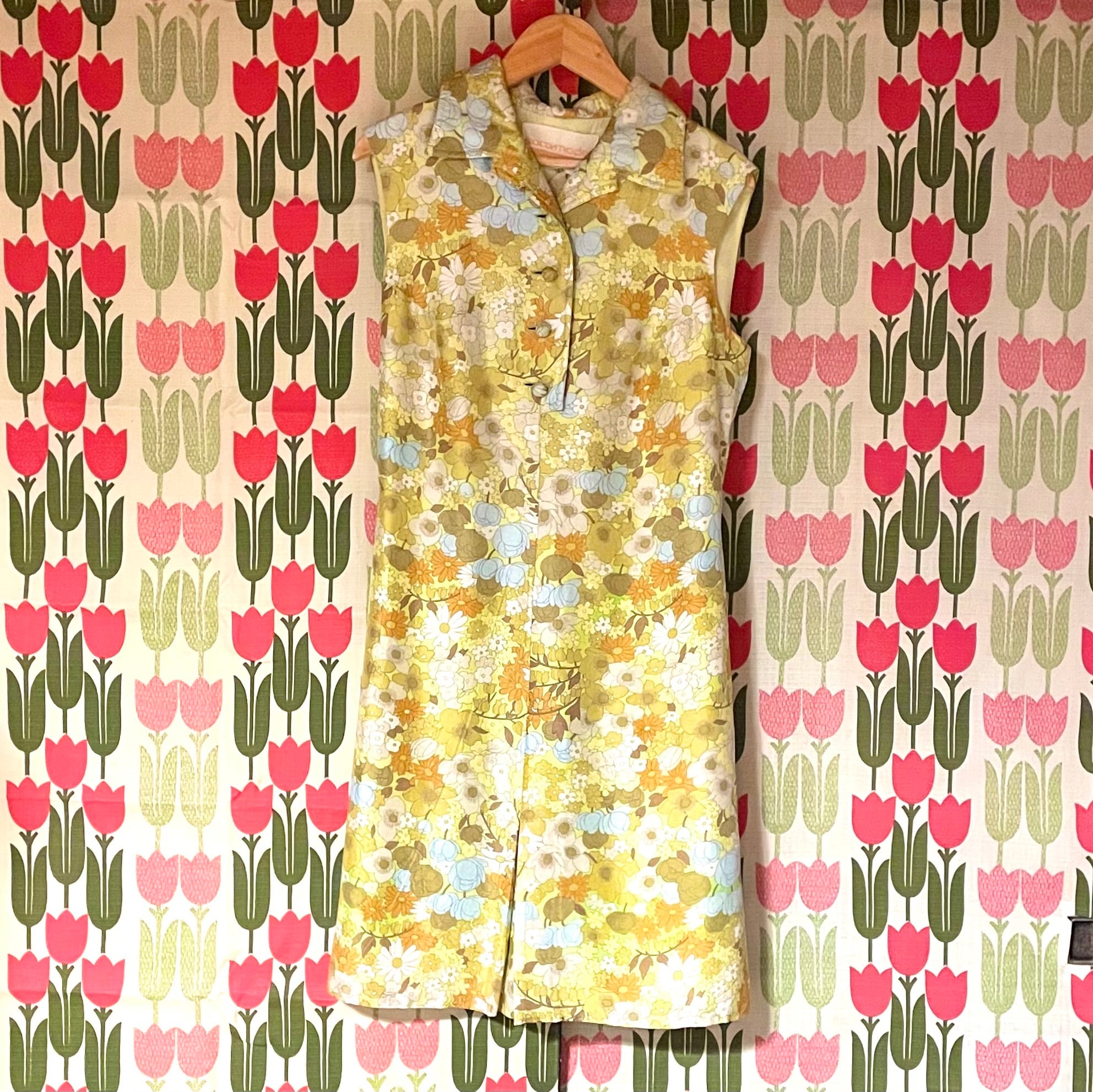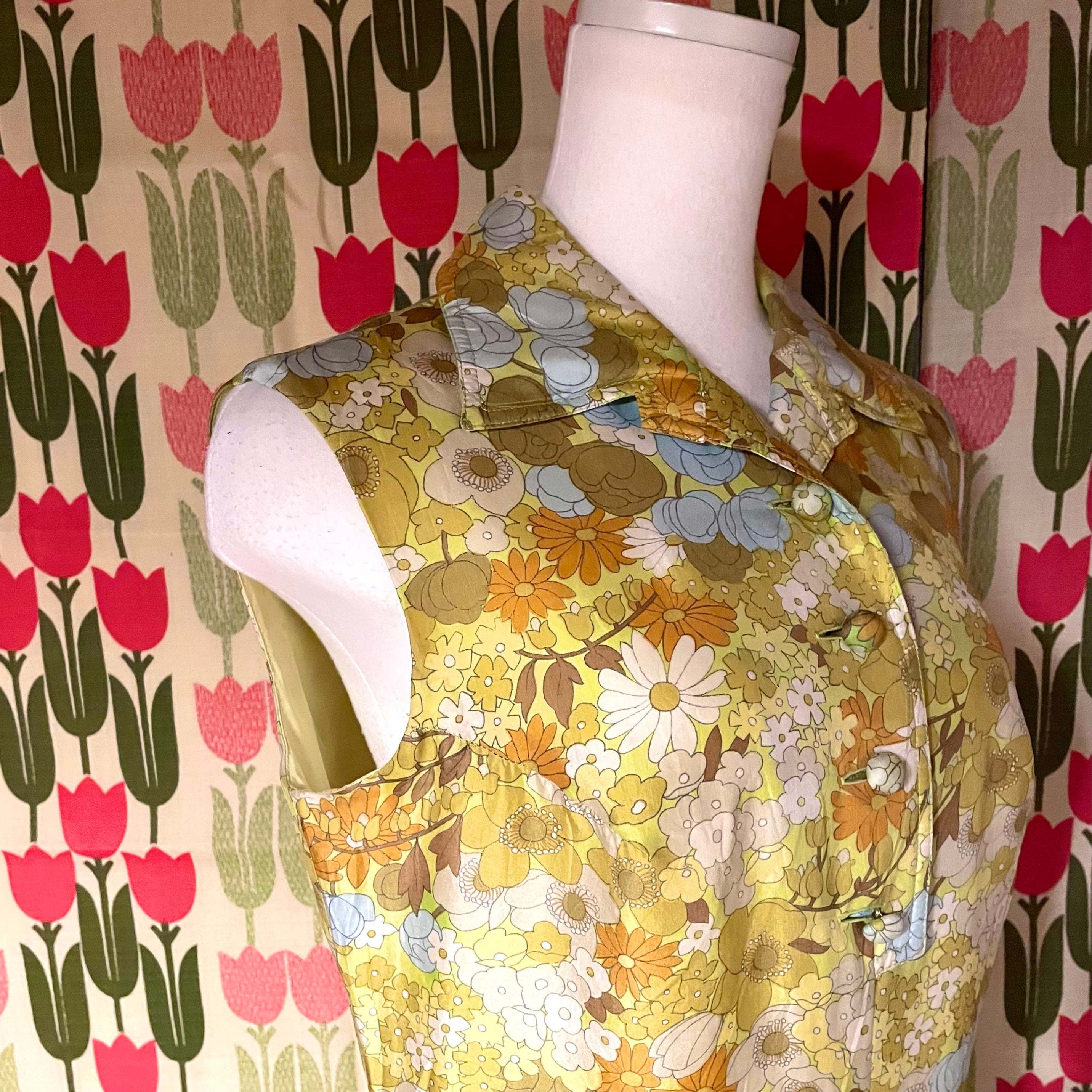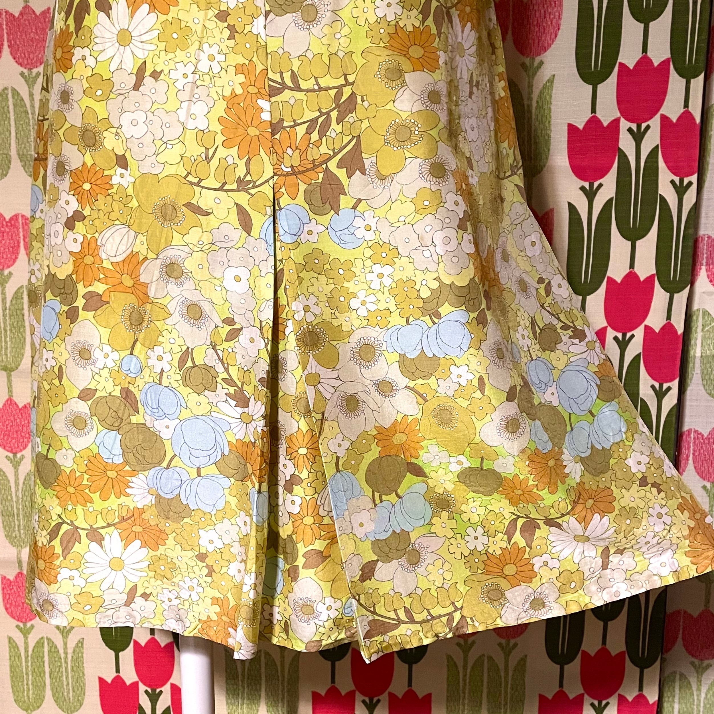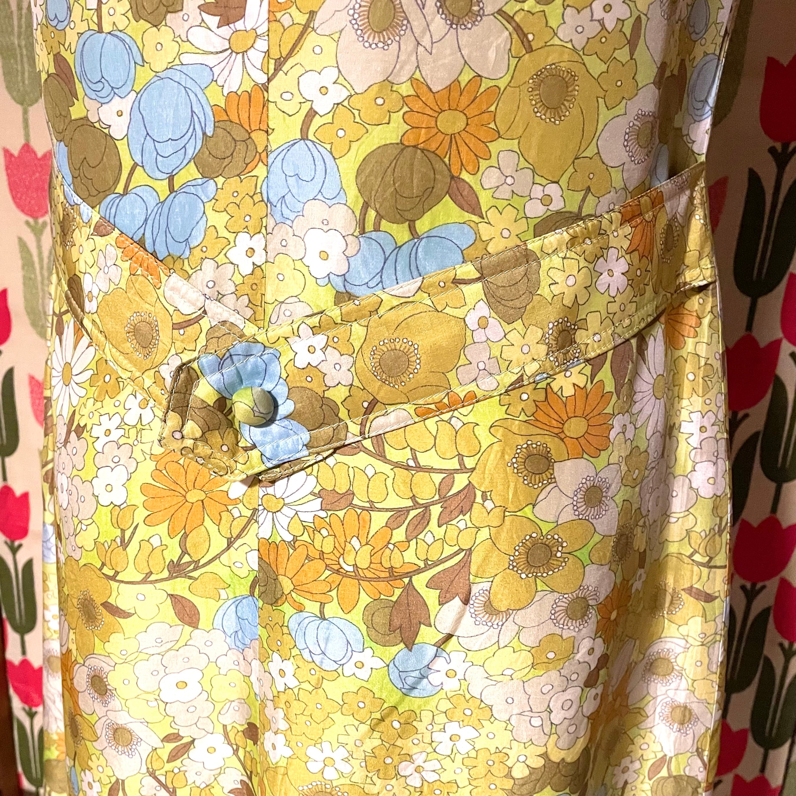 とっても上品で繊細な線で描かれているお花たち♡一つ一つ見るとレトロ花でポップです♬後ろの飾りベルトは取り外し不可。