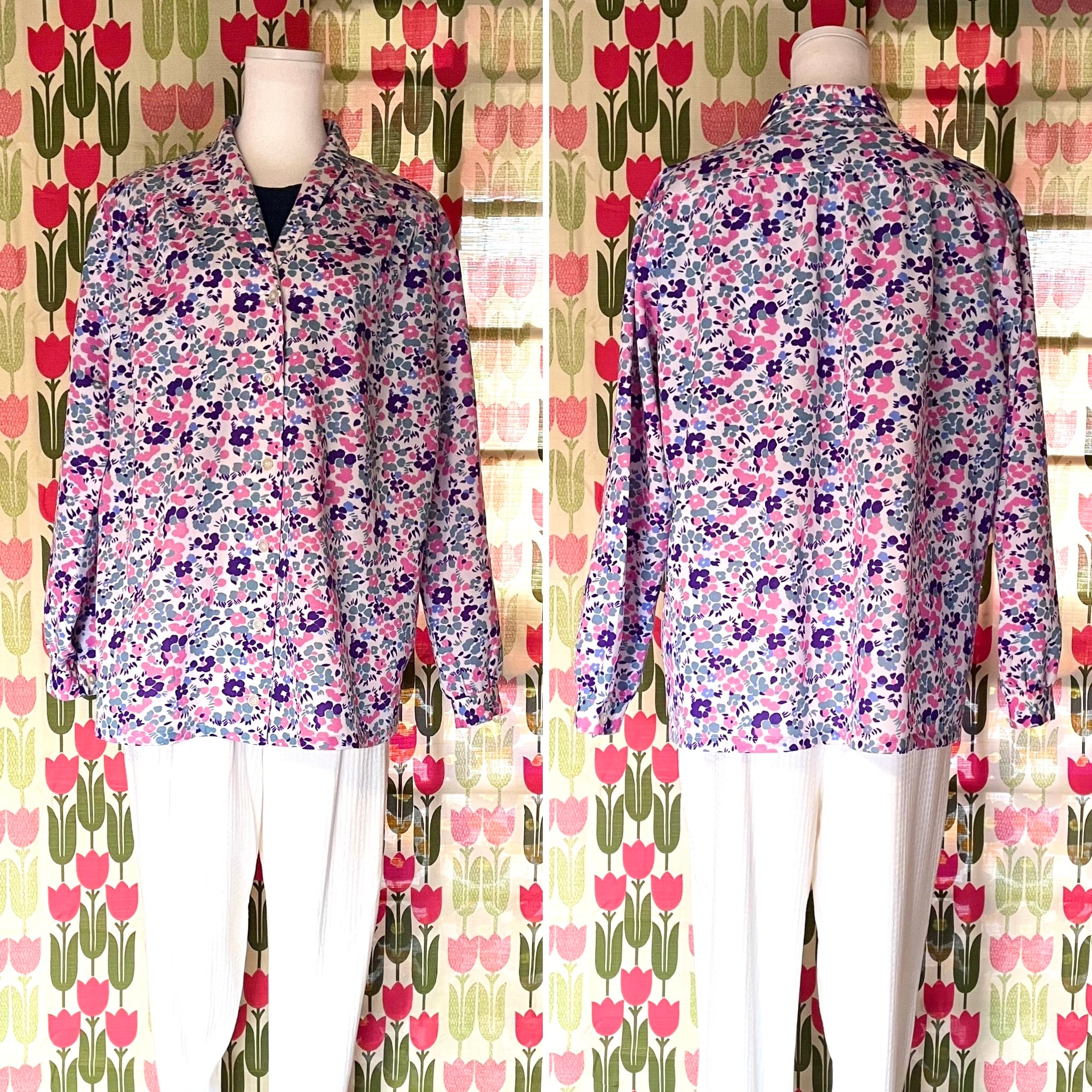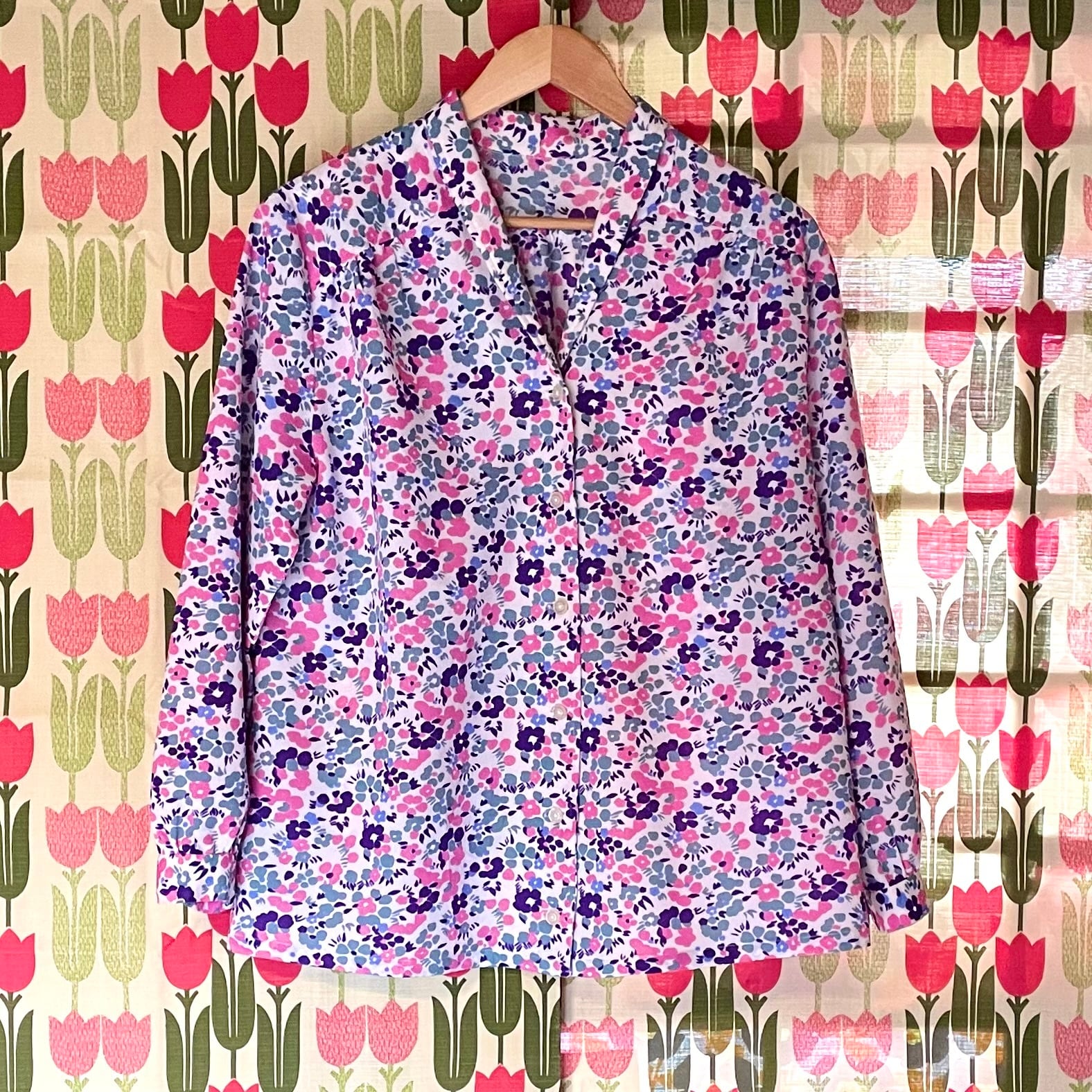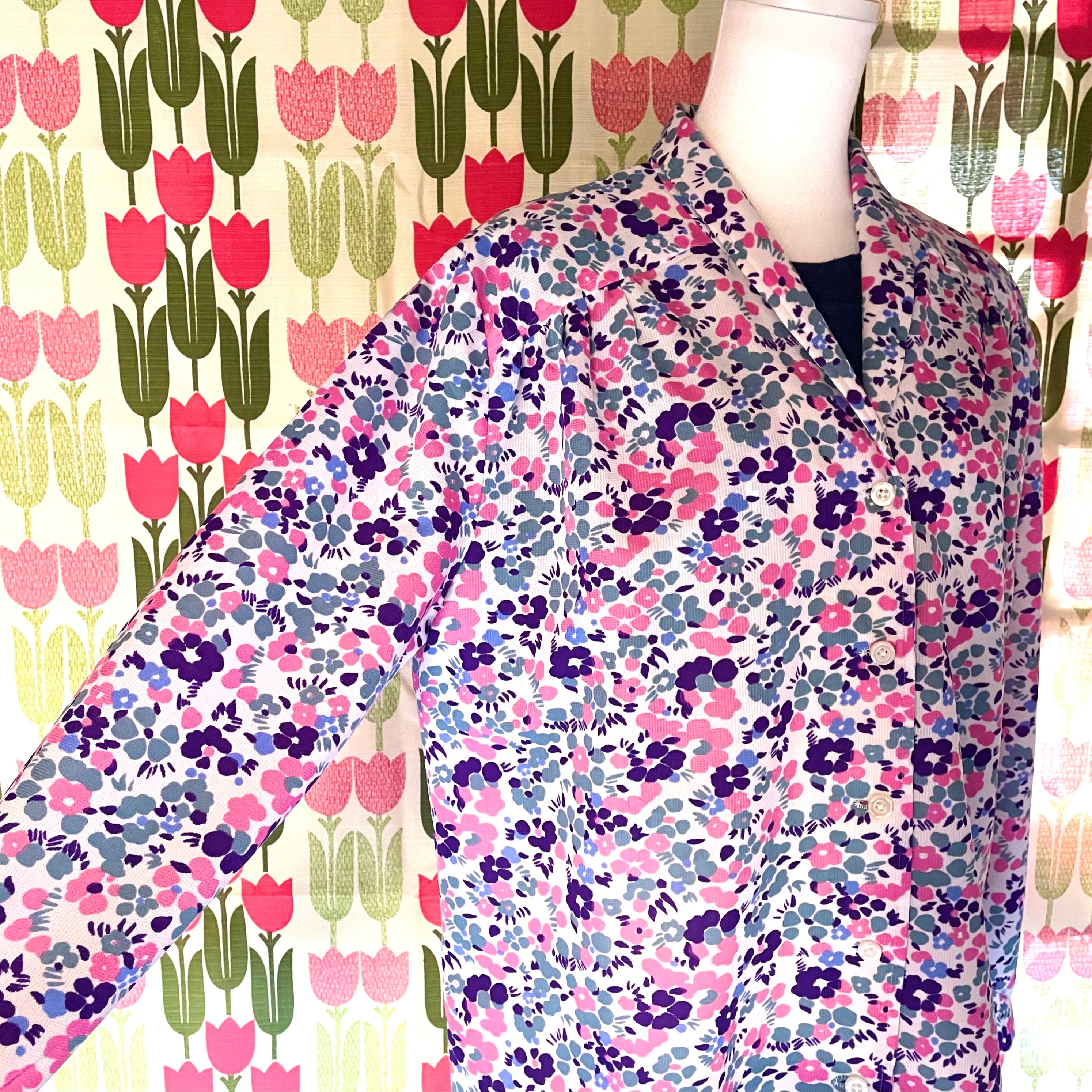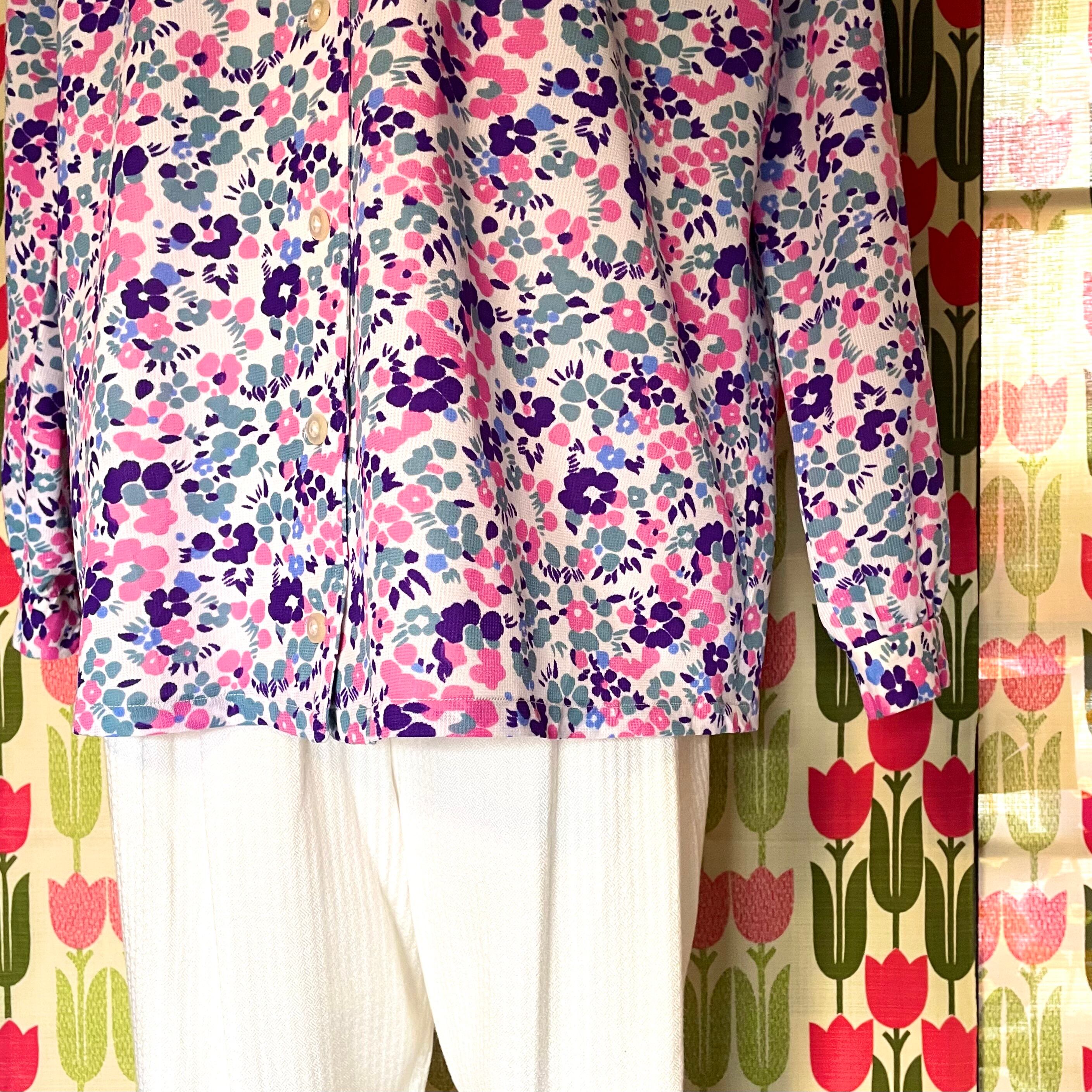 くすみカラー花柄ジャケット風ブラウス