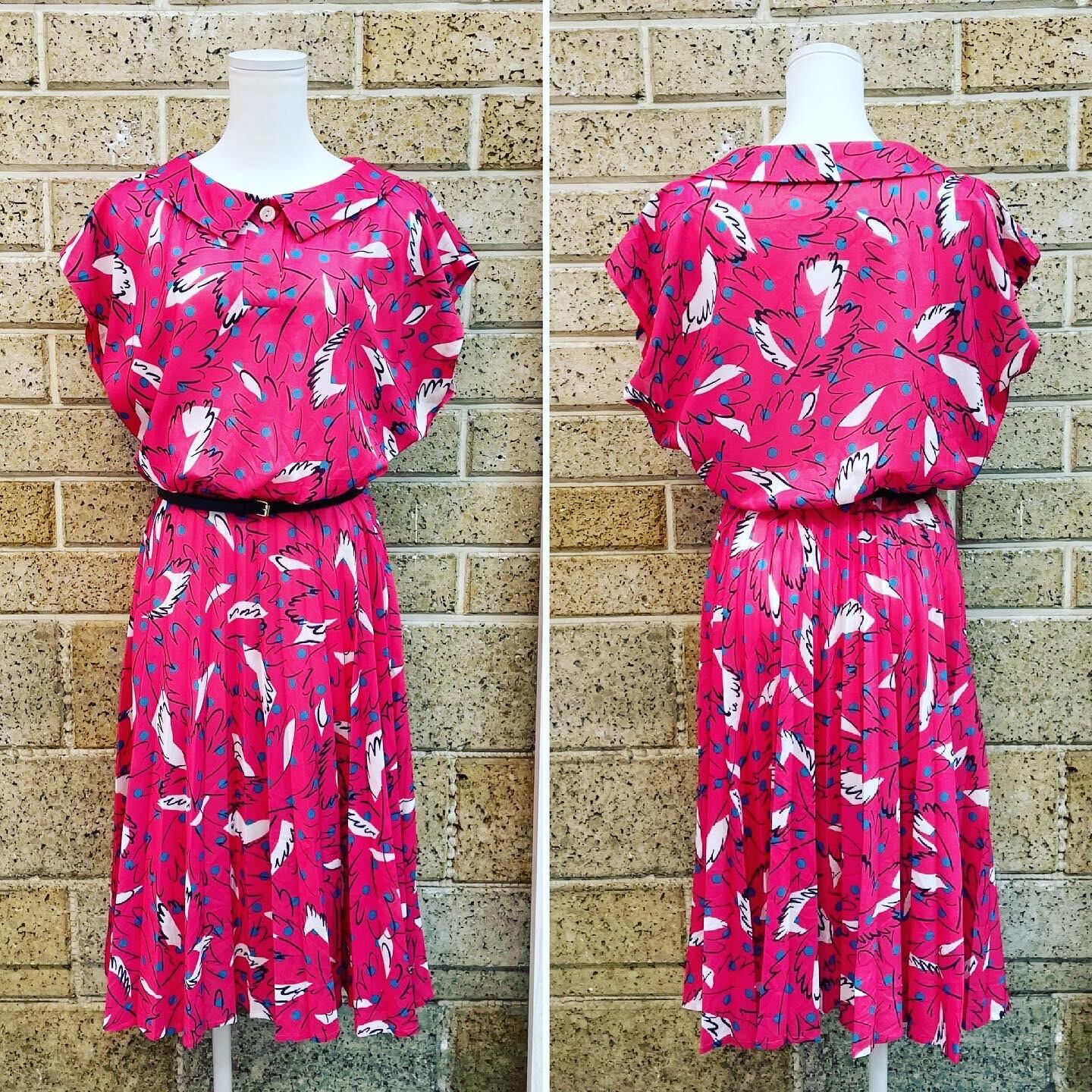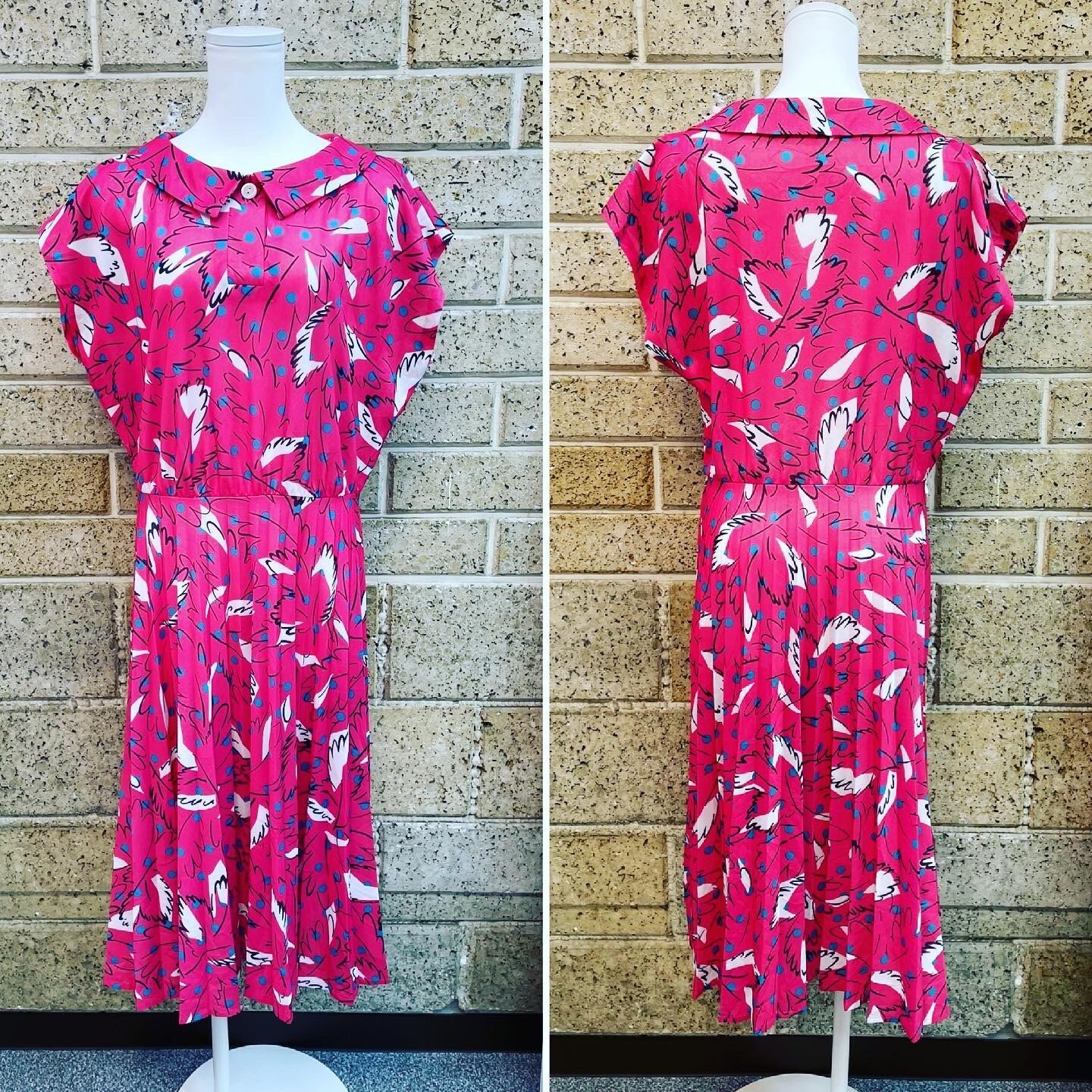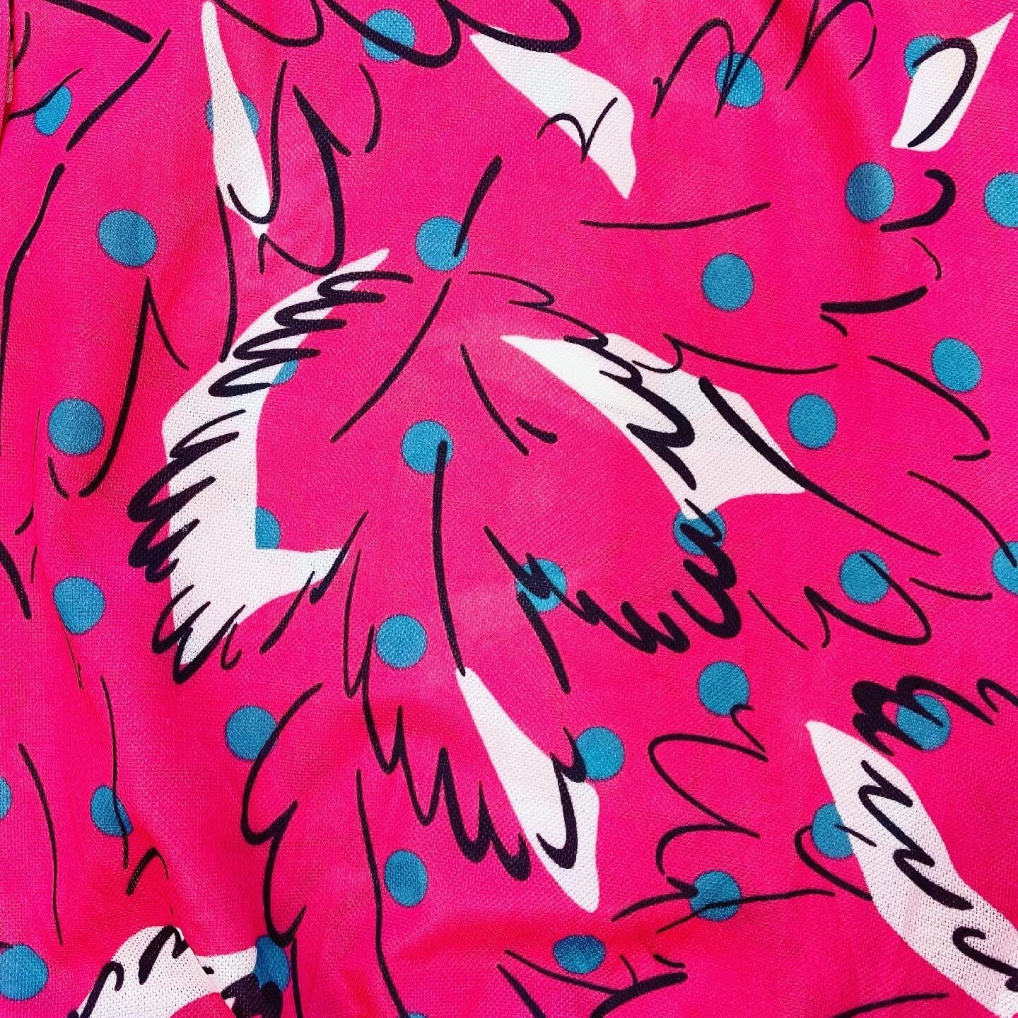 発色の良いピンクに青緑のドット