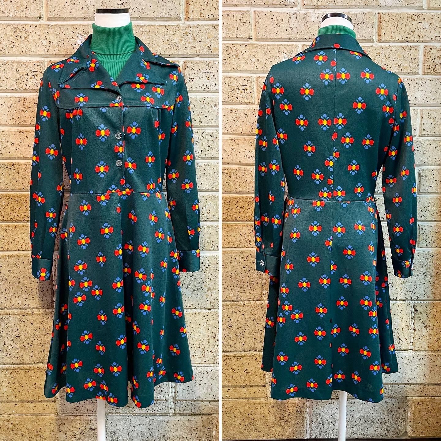 花?柄深緑ワンピ