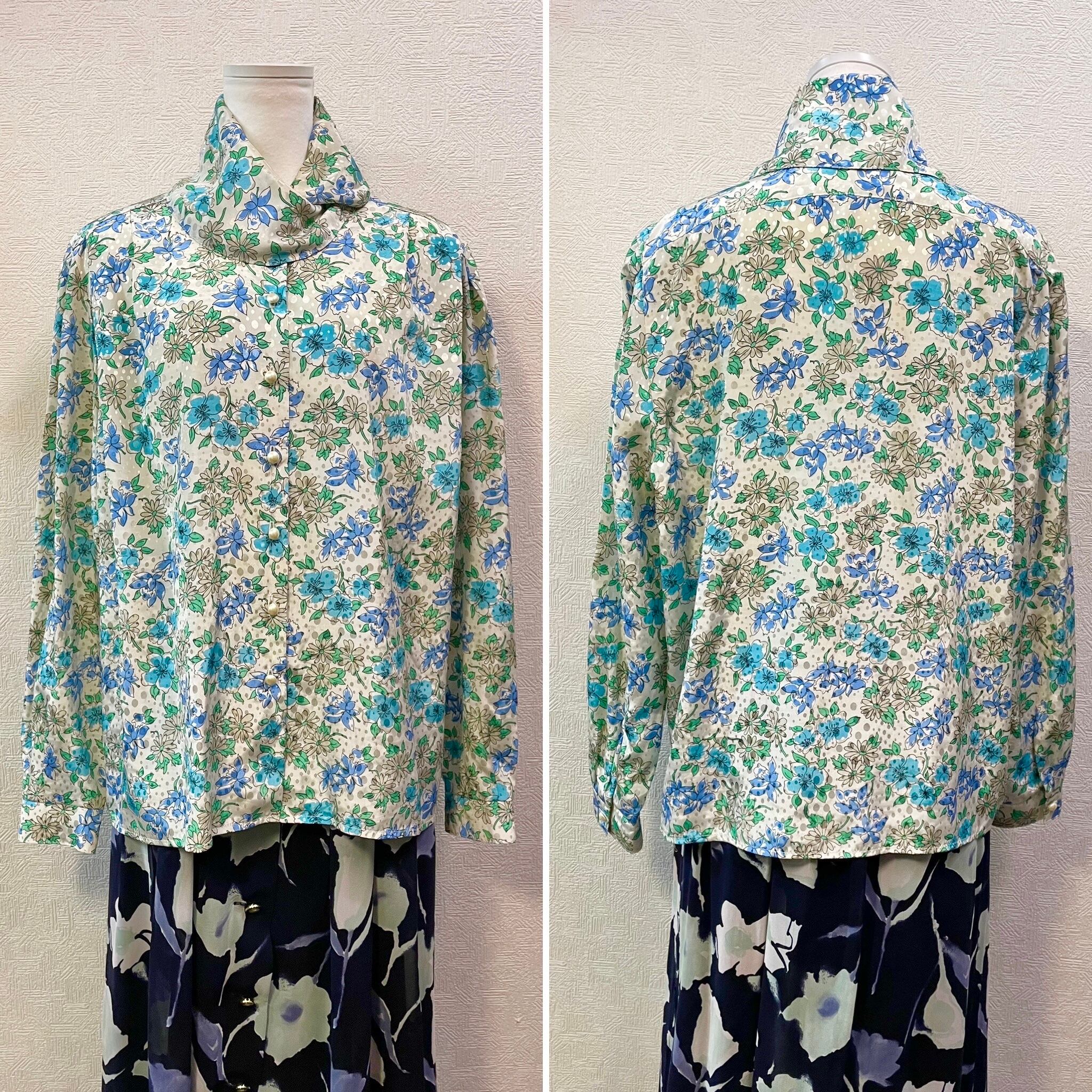 つやつやのドット柄織り生地に花柄がプリントされています!ボタンがパールな所が素敵です♬